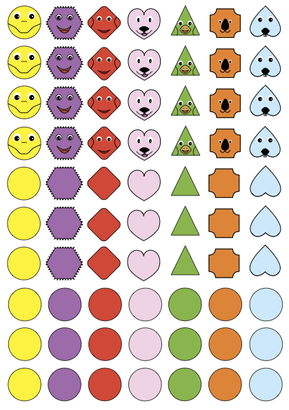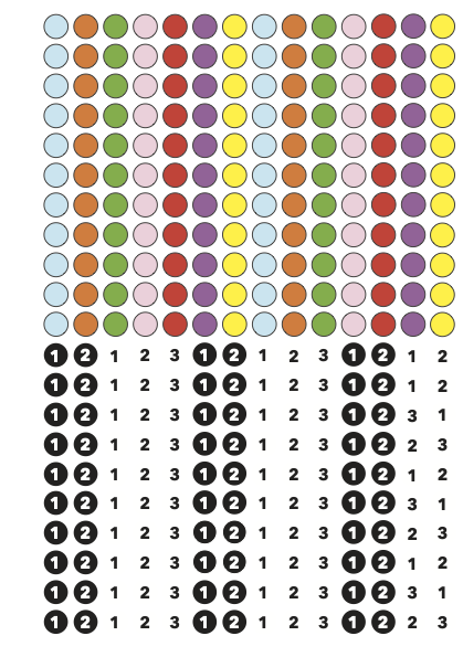 • Niveaux 1 à 3 : commencez par le Do (jaune), puis ajoutez Mi (rouge), Sol (vert), Ré (violet), Fa (rose) et La (orange)